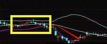 ② 卖2:股价线和移动平均线均很令人失望地下滑,这时股价线自下方上升,并突破了仍在下落的移动平均线后,又掉头下落,这是第二个卖出讯号。